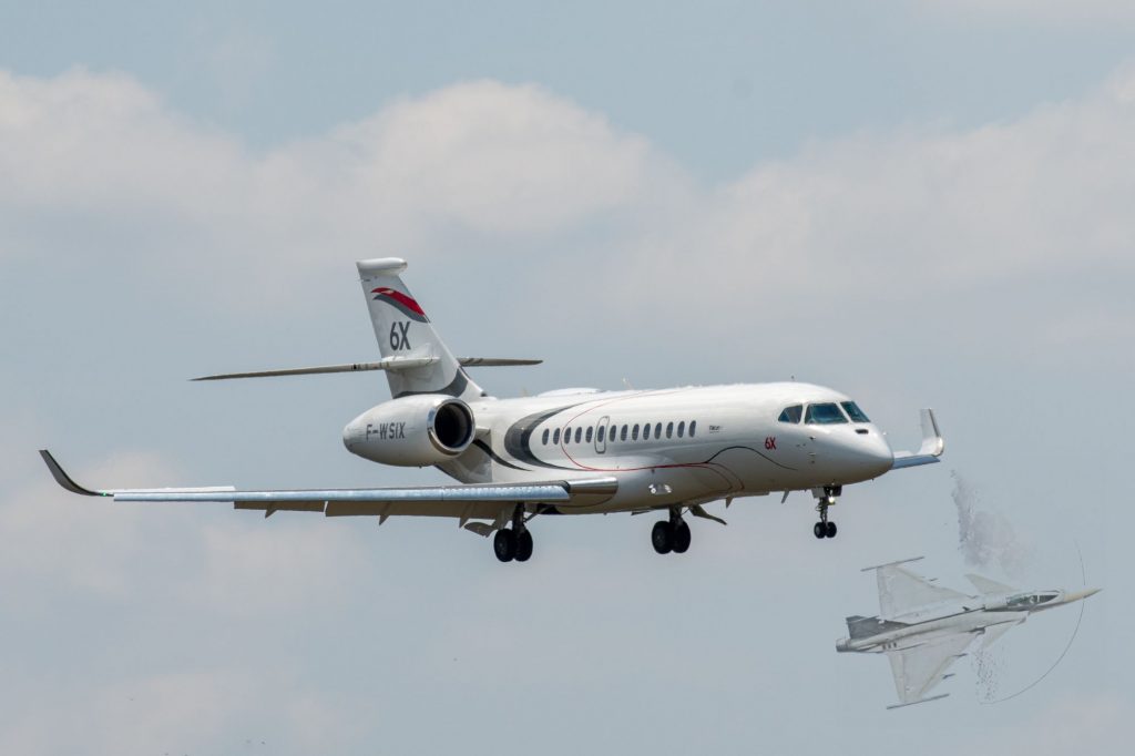 Im Flugprogramm der Paris Airshow zeigt Dassault Aviation den Business Jet Falcon 6X. Die Falcon 6X überzeugt mit einer Nonstop-Reichweite von bis zu 10.200 km. Dank ihrer hocheffizienten Triebwerke und ausgefeilten Aerodynamik sind auch lange Interkontinentalflüge ohne Zwischenlandung möglich.