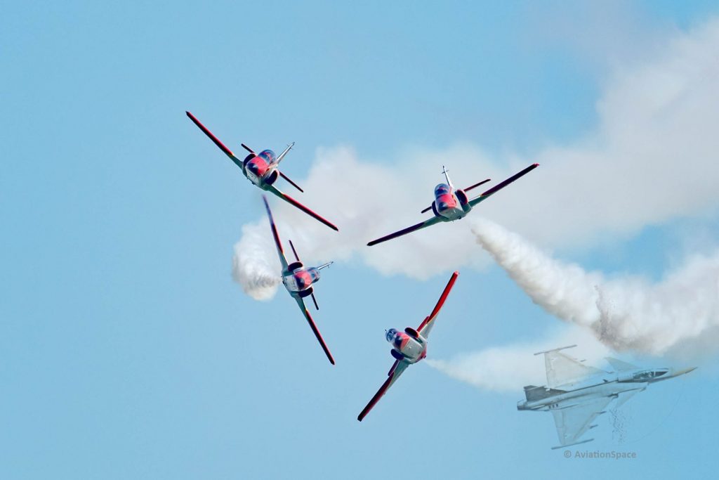 Im Flugprogramm der ILA stach in diesem Jahr die Patrulla Aguila hervor, die mit spektakulären Manövern und einem ebenso spektakulären Moderator am Start war.