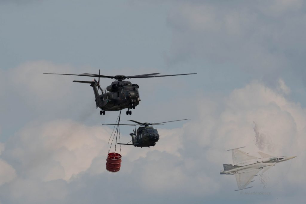 Als Ersatz für die in die Jahre gekommenen Tornados der Bundeswehr, stellten die USA hierzu die von ihnen angebotenen Fluggeräte aus. Sämtliche modernen Varianten der F16, F-15, F-18 wurden gezeigt und natürlich auch die F-35 Lightning. Leider flog keines dieser Flugzeuge im Flugprogramm. Auch nicht die F-35.