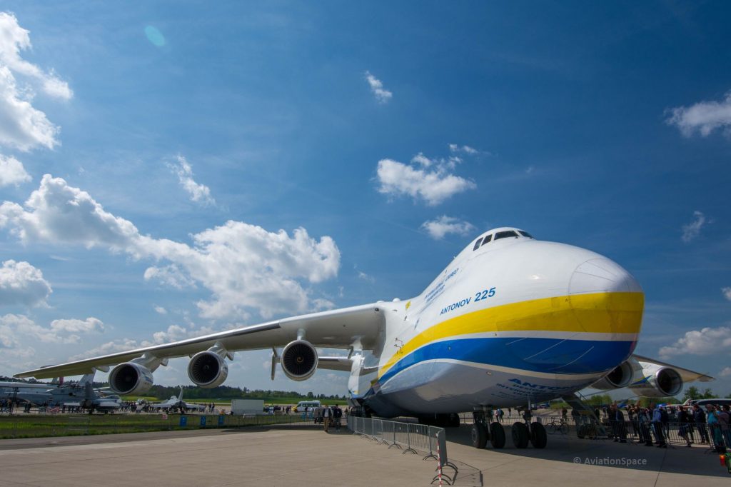 Ein weiterer Gigant der Lüfte stand nur ein Stück weiter. Das größte Frachtflugzeug der Welt, die Antonow An-225 in den Farben der Ukraine.