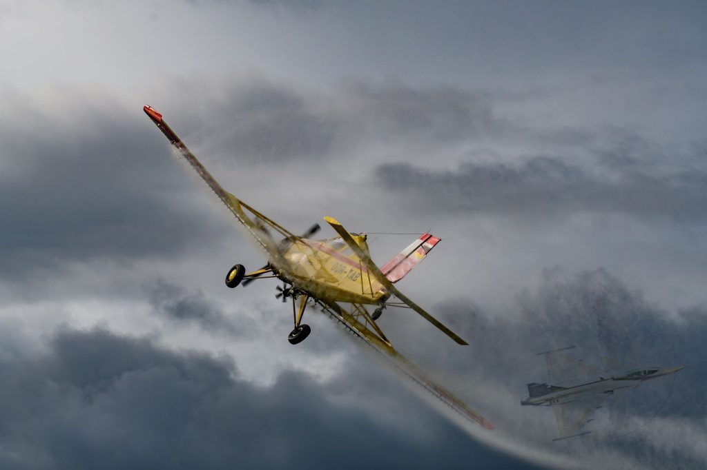 Dabei gab es auch Exoten, wie die PZL-106AR Kruk. Ein Agrarflugzeug das über eine Sprühvorrichtung und einen 1000l Tank verfügt und trotz seiner Größe sehr wendig ist.