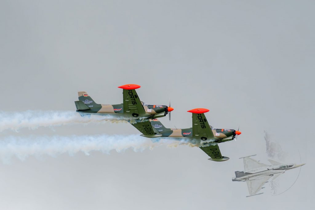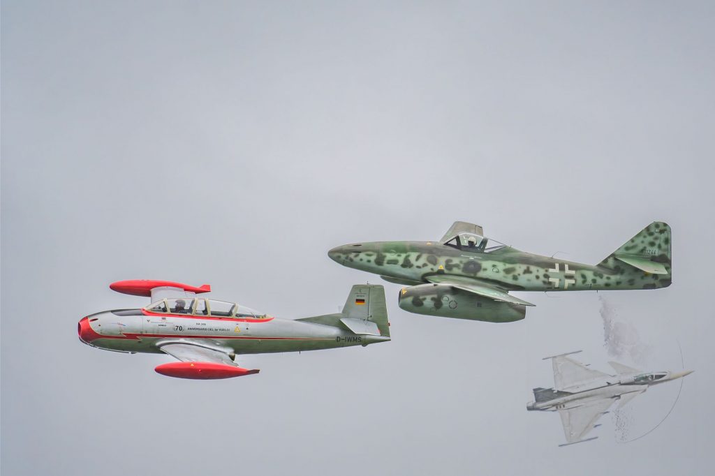 Die Messerschmitt Stiftung war ebenfalls im Flugprogramm vertreten und kam mit gleich zwei historischen Jets zur Hahnweide. Eine Me-262 und eine HA (Me) 200 D „Saeta“ boten Jet-Geschichte live und in Farbe.