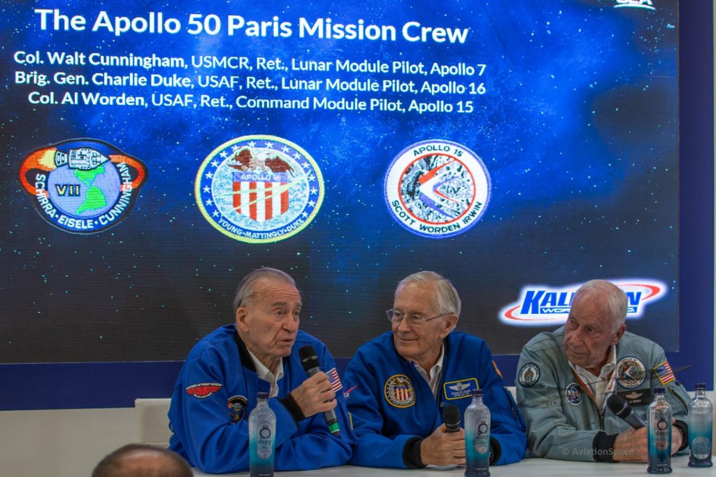 Im amerikanischen Pavillon gab es am heutigen Tag die Gelegenheit einer Pressekonferenz mit Astronauten des Apollo Programms: Col Walt Cunningham, Brig. Gen. Charlie Duke und Col. Al Worden. Die Chancen innerhalb der von Präsident Trump gesetzten Frist von 5 Jahren auf den Mond zurückzukehren sahen sie dabei kritisch. Der Kongress müsste dazu viel mehr Mittel bereitstellen, was bisher noch nicht geschehen sei. letzten Endes sei es eine Frage des Geldes. Die Herausforderungen an eine dauerhafte Station auf Mars oder Mond schätzen alle als sehr hoch ein. Die Besatzung müsste ja alle Probleme selbst lösen können, da Hilfe von der Erde Monate entfernt wäre. Oder wie es Charlie Duke sagte: ‚… out there you’re on your own, buddy..‘ Es war hochspannend und beeindruckend, wie informiert, interessiert und witzig diese fast 90 jährigen Männer die Fragen beantworteten.